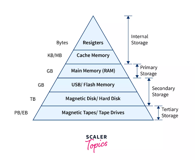 ( EX.) CPU와 가까운 레지스터는 RAM보다 용량은 적지만, 속도가 압도적으로 빠르고 /